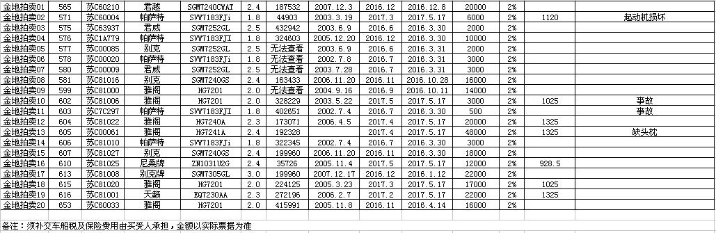 特別說(shuō)明:本場(chǎng)拍賣(mài)會(huì)限報(bào)500個(gè)競(jìng)買(mǎi)號(hào)牌,達(dá)到限定號(hào)牌數(shù)即停止辦理報(bào)名手續(xù)。每個(gè)競(jìng)買(mǎi)人限報(bào)5個(gè)競(jìng)買(mǎi)號(hào)牌,每個(gè)競(jìng)買(mǎi)號(hào)牌只能競(jìng)拍成交一輛車。