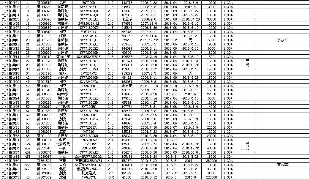本場(chǎng)車輛拍賣(mài)會(huì)車型豐富,主要包括轎車、越野車、商務(wù)車、微型面包車、皮卡等。品牌有皇冠、帕薩特、尼桑、別克、雅閣、福特、雪佛蘭、現(xiàn)代、朗逸、菲亞特、東風(fēng)、金杯、長(zhǎng)安、五菱等;