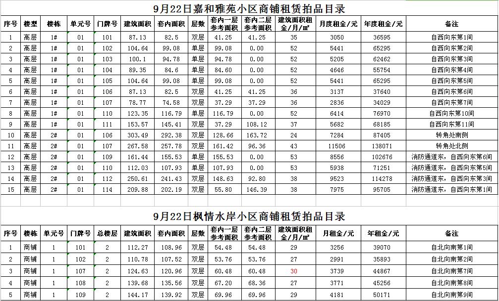 我公司受委托,定于2017年9月22日10時(shí)在本公司拍賣廳對(duì)以下小區(qū)門面房進(jìn)行公開拍租: