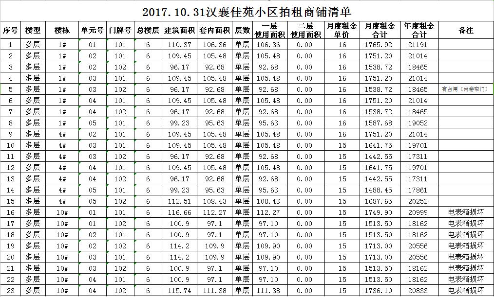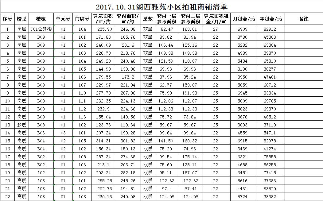 我公司受委托,定于2017年10月31日10時在本公司拍賣廳對以下小區(qū)門面房進行公開拍租: