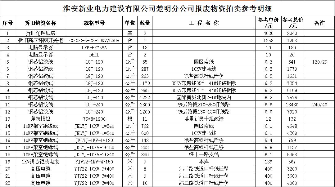 三、本次拍賣物資部分按照單價(jià)拍賣,部分打包拍賣。