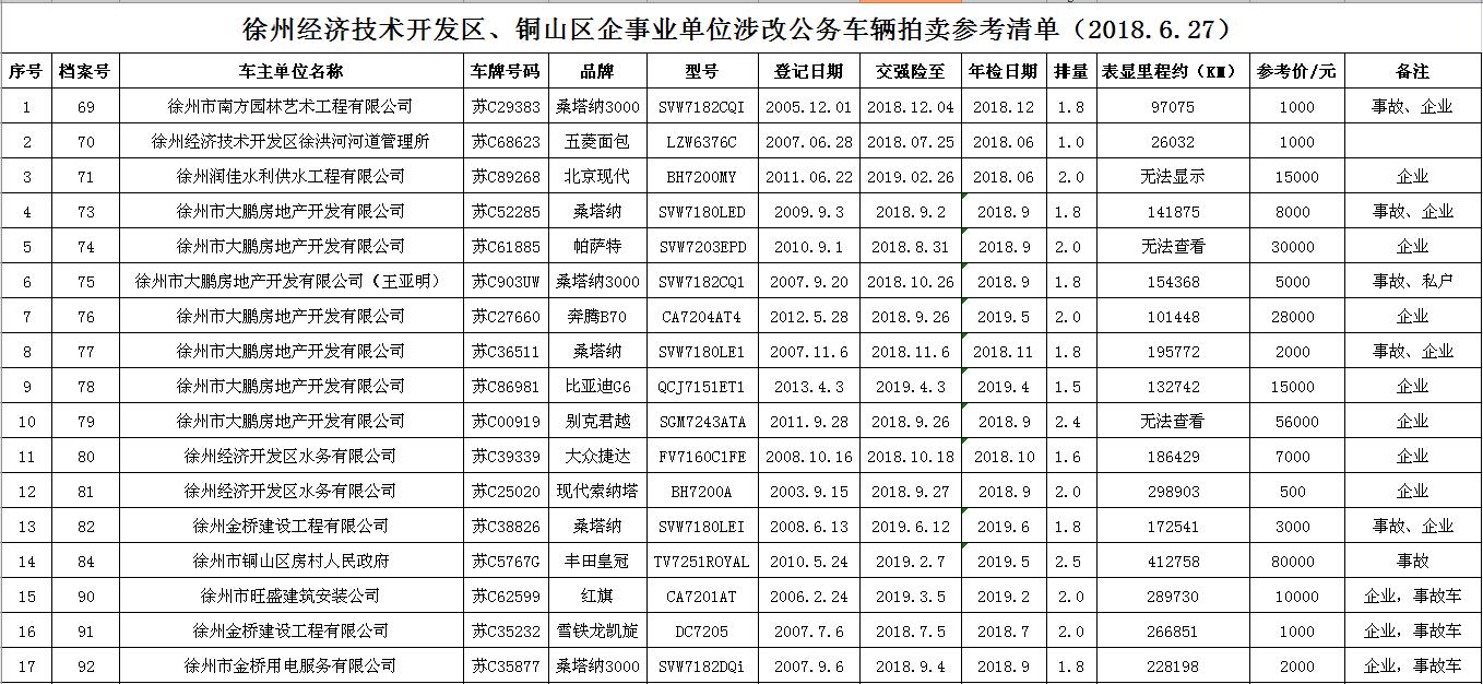 一、拍賣標的:區(qū)級企事業(yè)單位涉改公車數(shù)十輛。