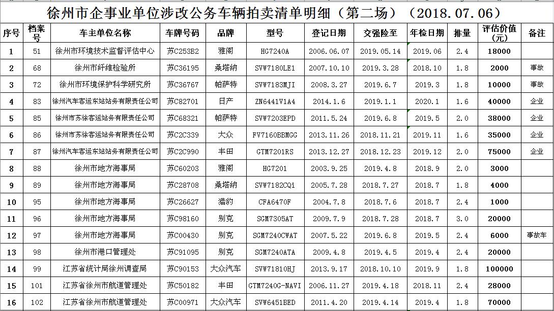一、拍賣標(biāo)的:徐州市企事業(yè)單位改革公務(wù)車輛(詳見每期拍品目錄)。