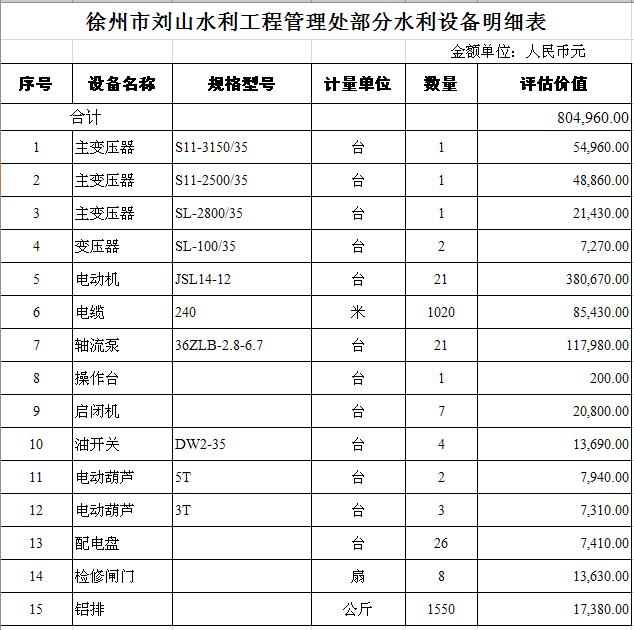 我公司受委托,定于2018年7月19日上午10時(shí)在徐州中山南路55號三樓本公司拍賣廳拍賣:徐州市劉山水利工程管理處部分水利設(shè)備。