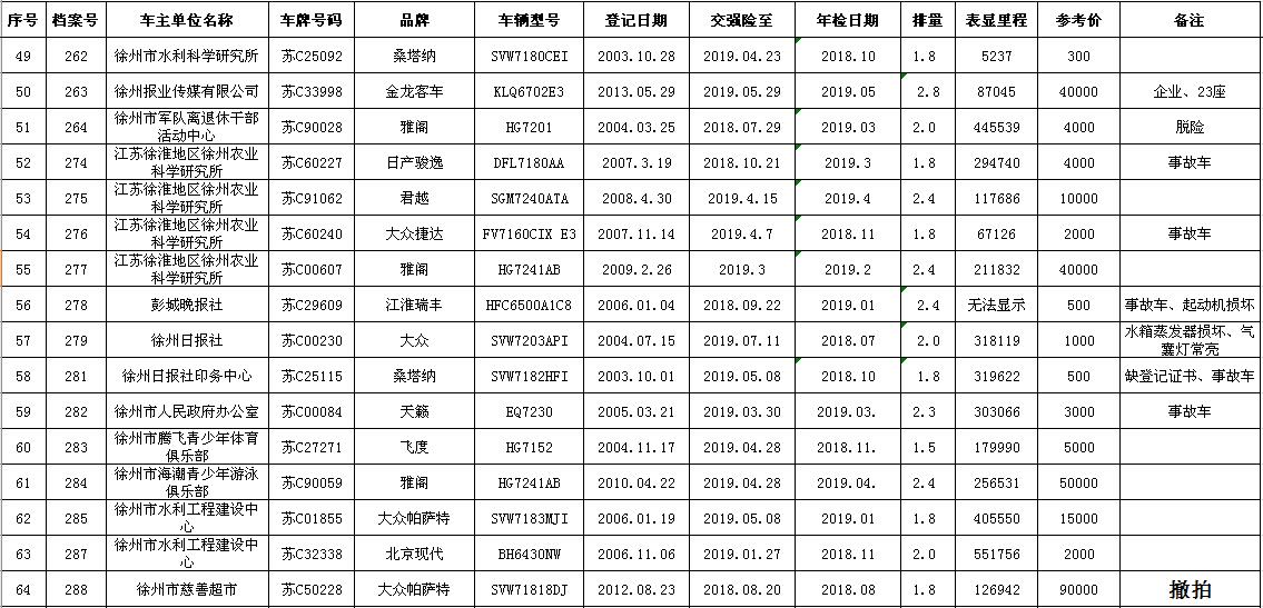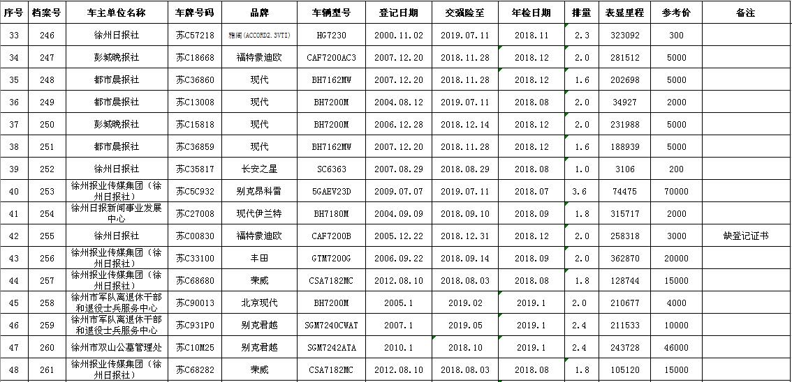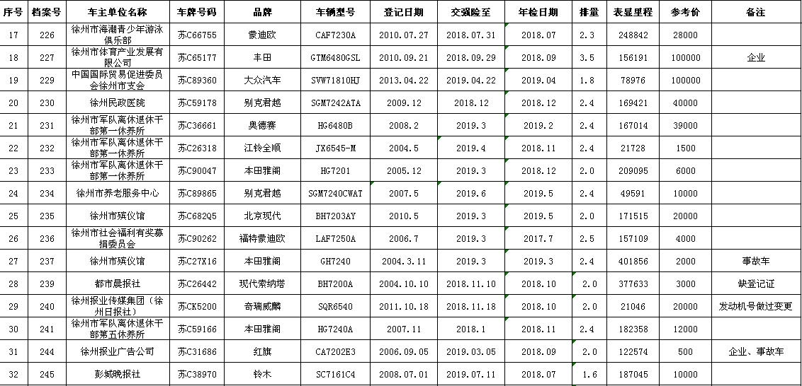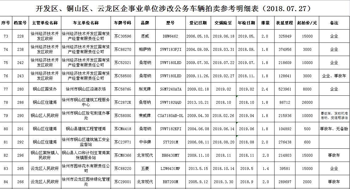 一、拍賣標的:徐州市企事業(yè)單位改革公務車輛(詳見每期拍品目錄)。