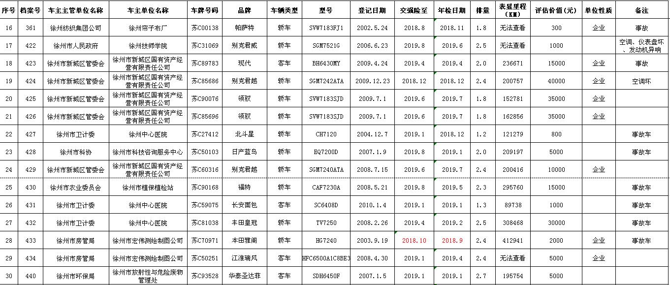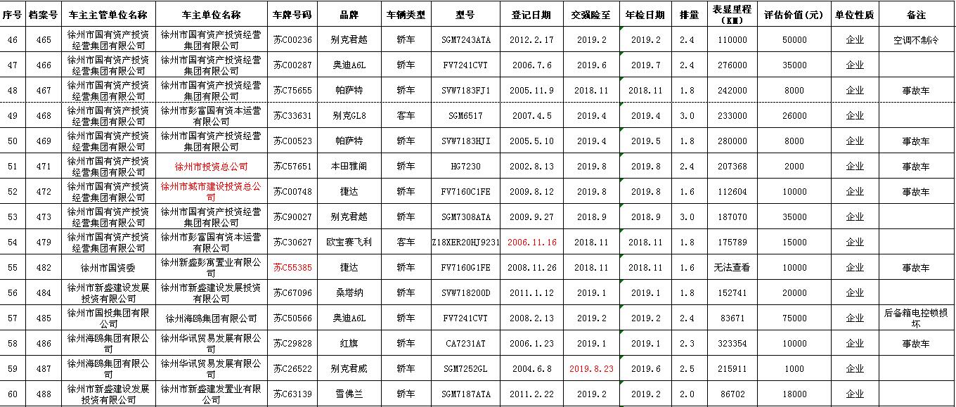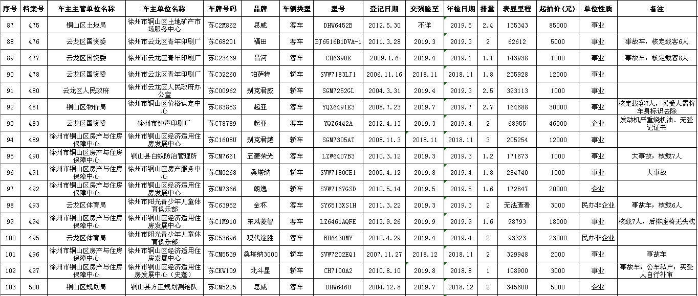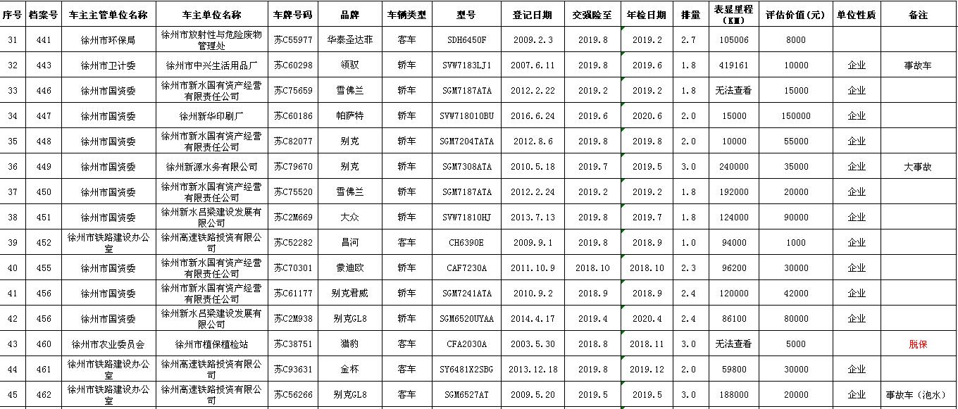 一、拍賣標(biāo)的:徐州市市級及區(qū)級企事業(yè)單位改革公務(wù)車輛共約114輛(詳見拍品目錄)。