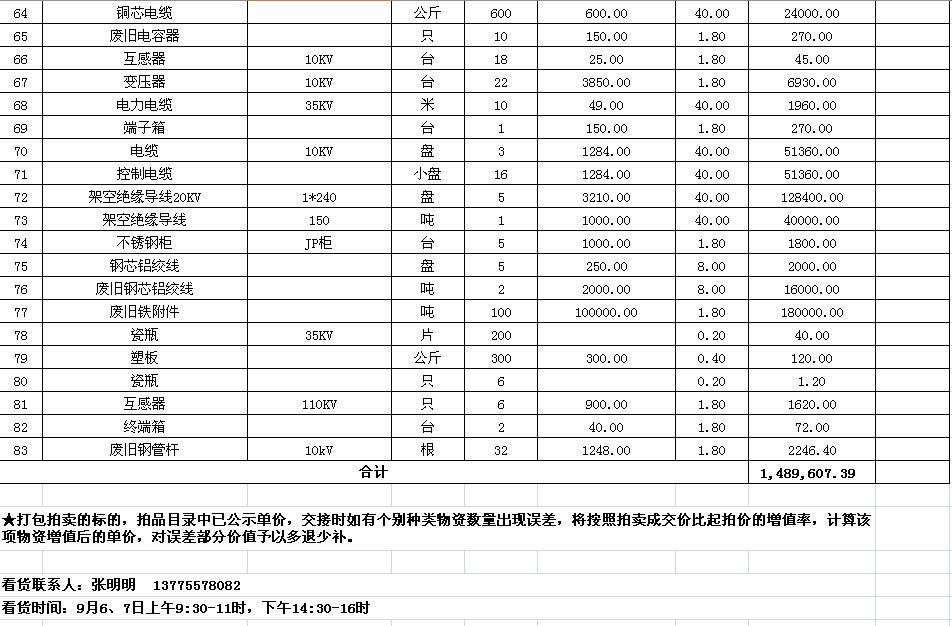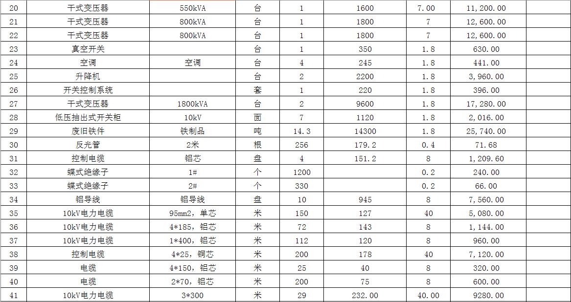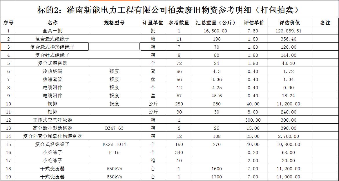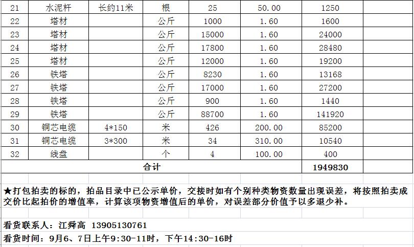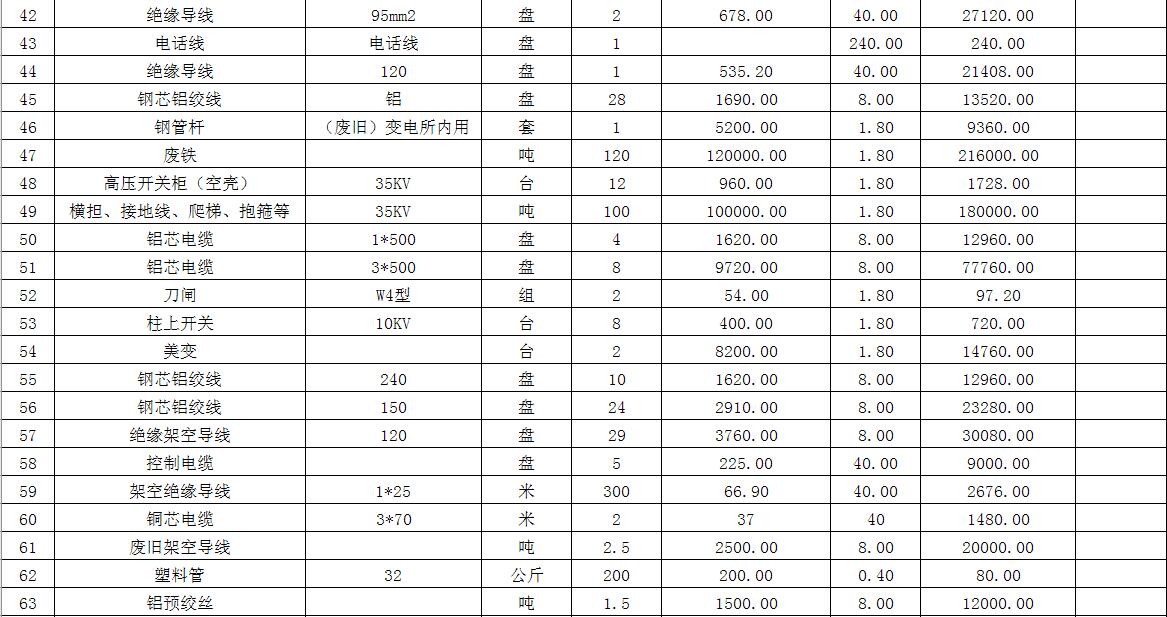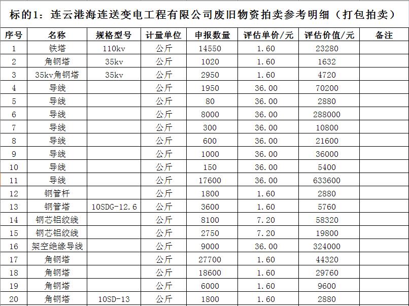 拍賣(mài)標(biāo)的主要包括:鐵塔、角鋼塔、鋼管桿、鋼芯鋁絞線(xiàn)、電纜、變壓器、金具等。