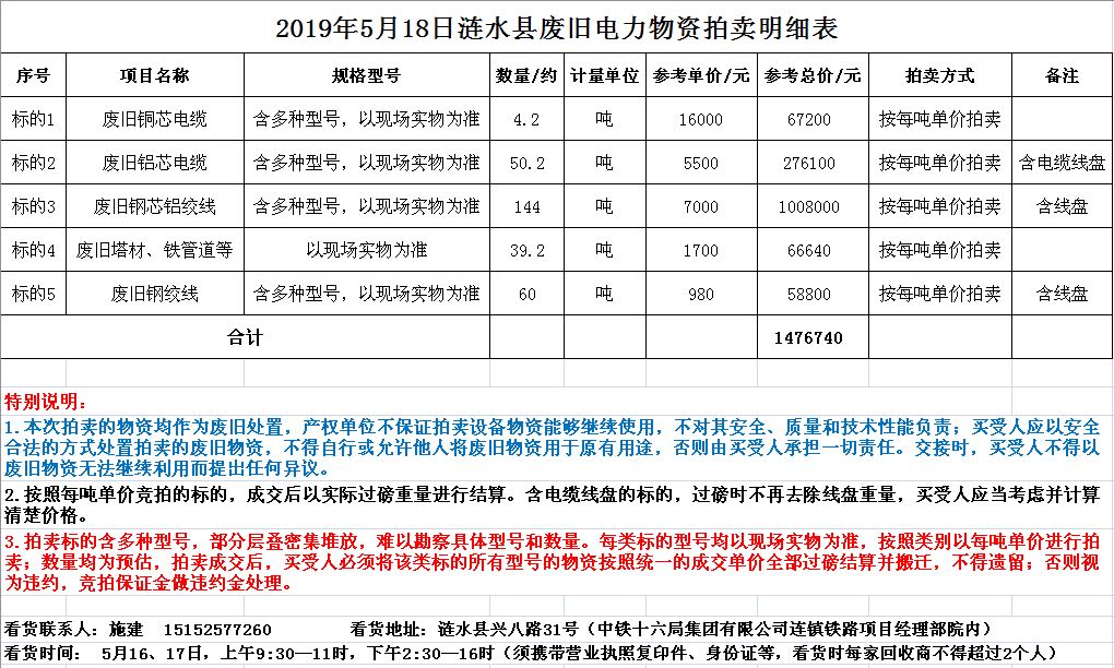 受委托,我公司將通過中國拍賣行業(yè)協(xié)會(huì)網(wǎng)絡(luò)拍賣平臺(tái)以網(wǎng)絡(luò)競價(jià)的方式公開拍賣以下廢舊電力物資,主要包括:銅芯電纜、鋁芯電纜、鋼芯鋁絞線、鋼絞線、角鋼塔等。