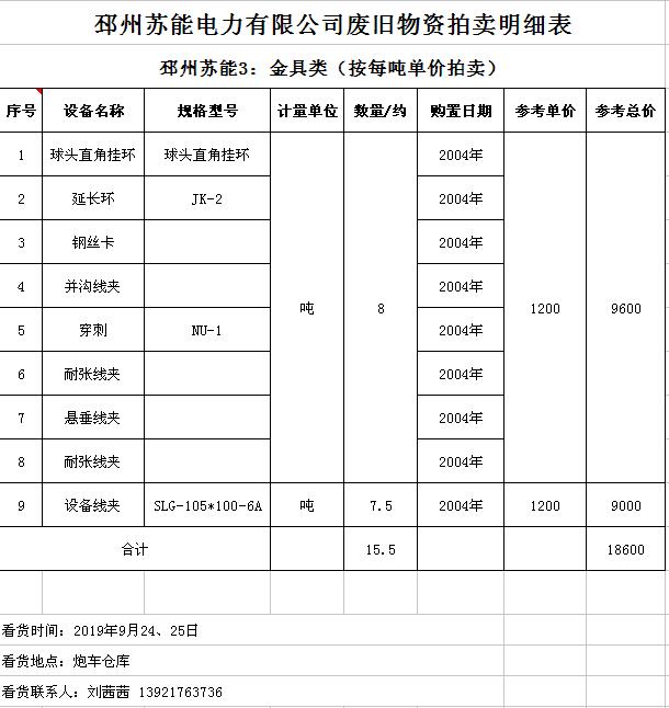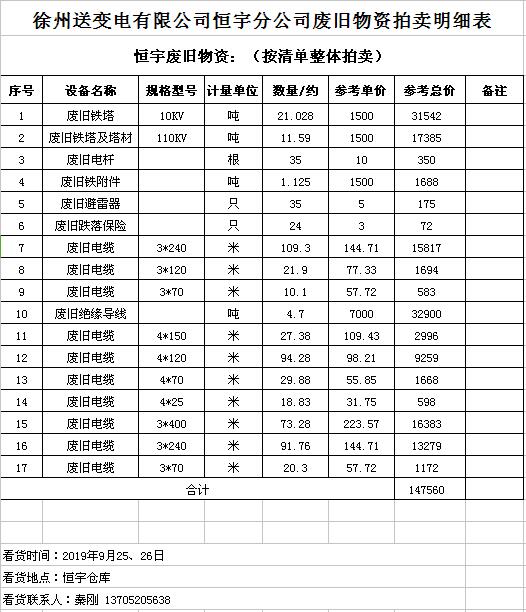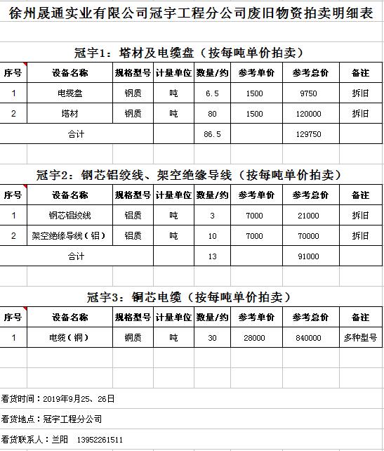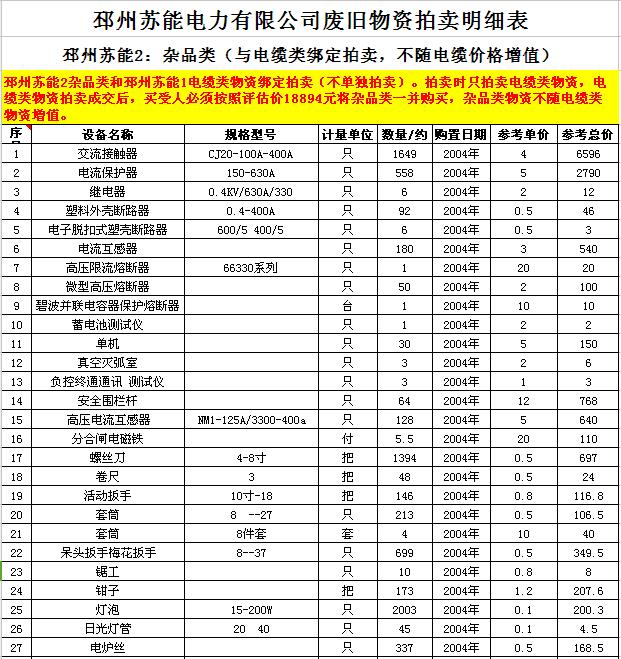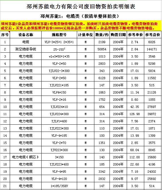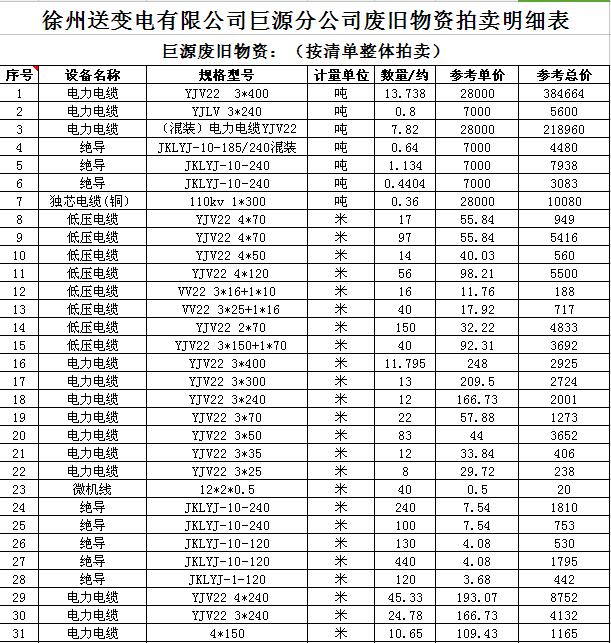 受委托,我公司將通過中國拍賣行業(yè)協(xié)會(huì)網(wǎng)絡(luò)拍賣平臺(tái)以網(wǎng)絡(luò)競價(jià)的方式公開拍賣廢舊電力物資一批,主要包括:電纜、導(dǎo)線、廢舊鋼材、鋼芯鋁絞線、金具、雜品、機(jī)具、空調(diào)、辦公設(shè)備等。