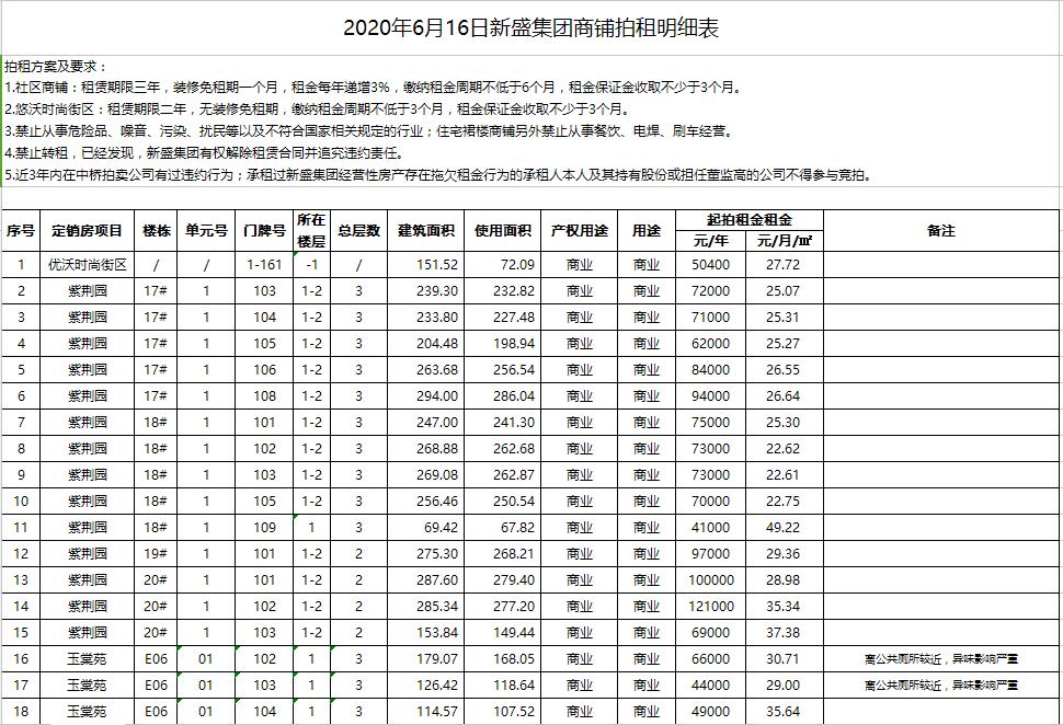 即日起展示。有意者請(qǐng)攜帶有效證件至我公司辦理報(bào)名手續(xù),并交納每間商鋪2萬(wàn)元競(jìng)拍保證金即可參加拍賣(mài)會(huì),報(bào)名截止至6月15日16時(shí)。