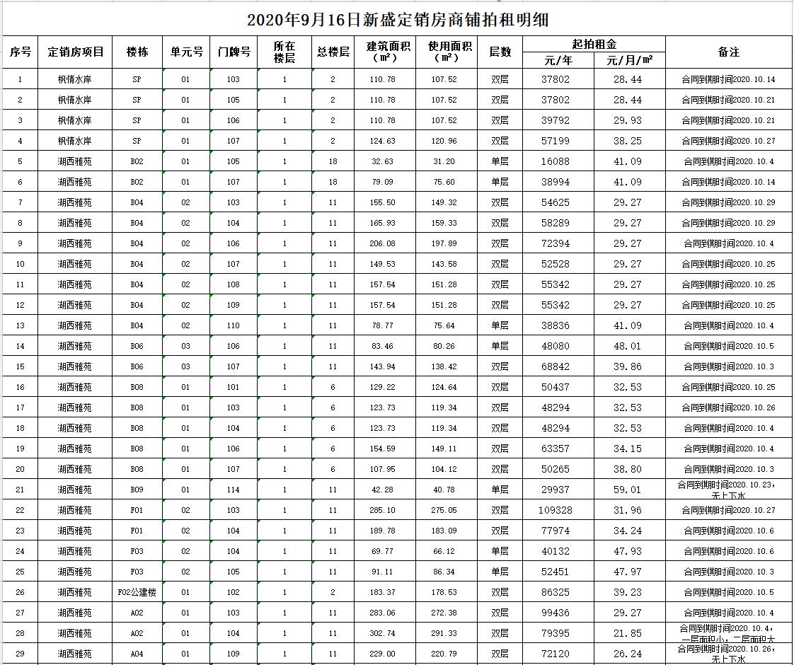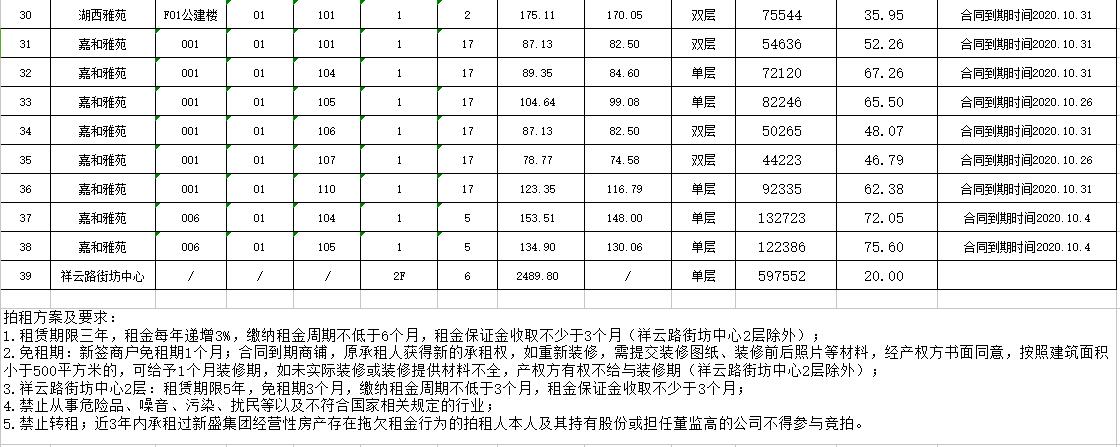 我公司受委托,定于2020年9月16日9:30在徐州云泉山莊第七會議室公開拍租以下社區(qū)房屋:楓情水岸、湖西雅苑、嘉和雅苑、祥云路街坊中心二層等。拍租房屋共39處,商鋪面積分別約為數(shù)十至數(shù)百平米,祥云路街坊中心二層約2490平米。社區(qū)商鋪租期三年,祥云路街坊中心二層辦公房租期五年。詳情請登錄本公司網(wǎng)站或微信公眾號查詢。