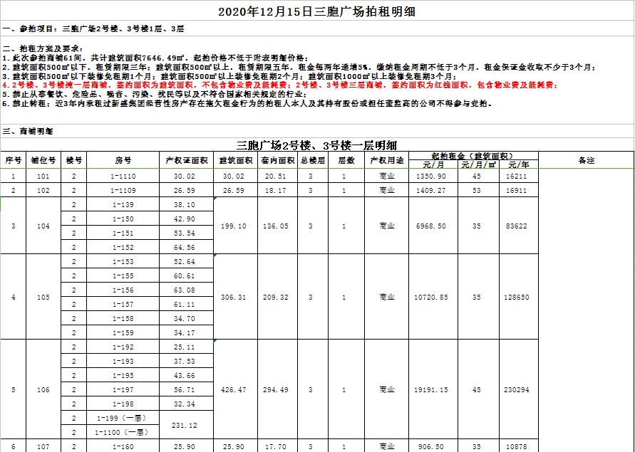 我公司受委托,定于2020年12月15日10時(shí)在徐州市中山南路55號(hào)三樓本公司拍賣廳公開拍租:新盛集團(tuán)位于三胞廣場(chǎng)商鋪及辦公房一批,面積分別為數(shù)十至數(shù)百平米不等,均為閑置。租期3-5年。禁止從事危險(xiǎn)品、有污染及擾民的行業(yè)經(jīng)營(yíng)。