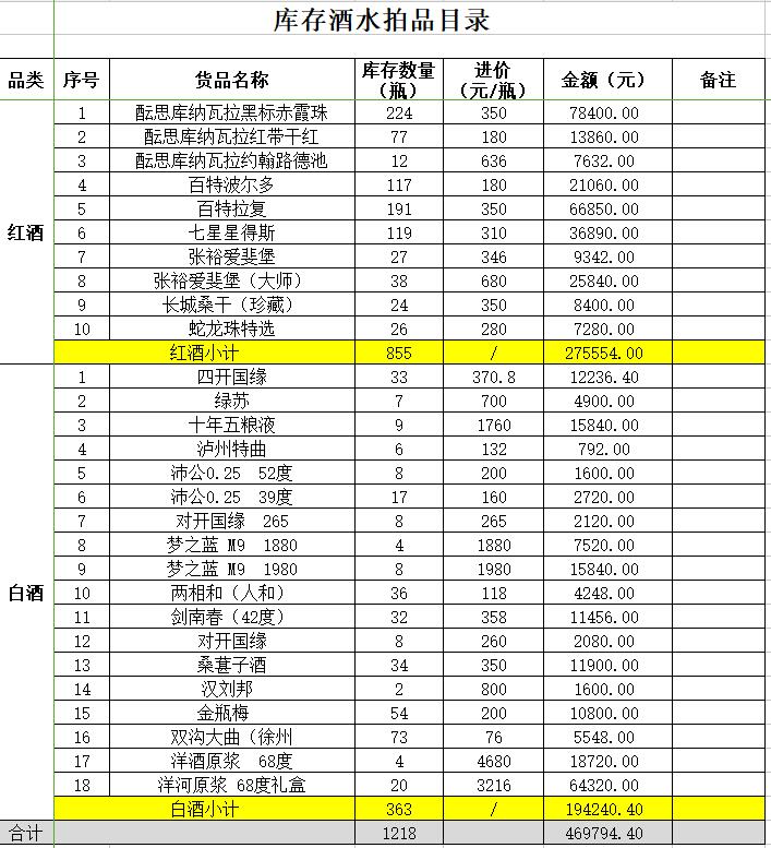 受委托,我公司定于2021年1月11日10時(shí)在中拍平臺(tái)公開(kāi)拍賣:庫(kù)存精品紅酒、白酒一批。該批酒類為單位庫(kù)存接待用酒,均有進(jìn)貨發(fā)票,部分為收藏酒。
